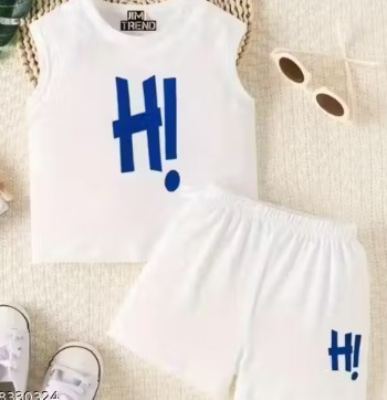 Private Label Baby Boys Cotton Summer Co Ord Set White Sleeveless Hi Print TShirt Shorts Size 2 to 3Y