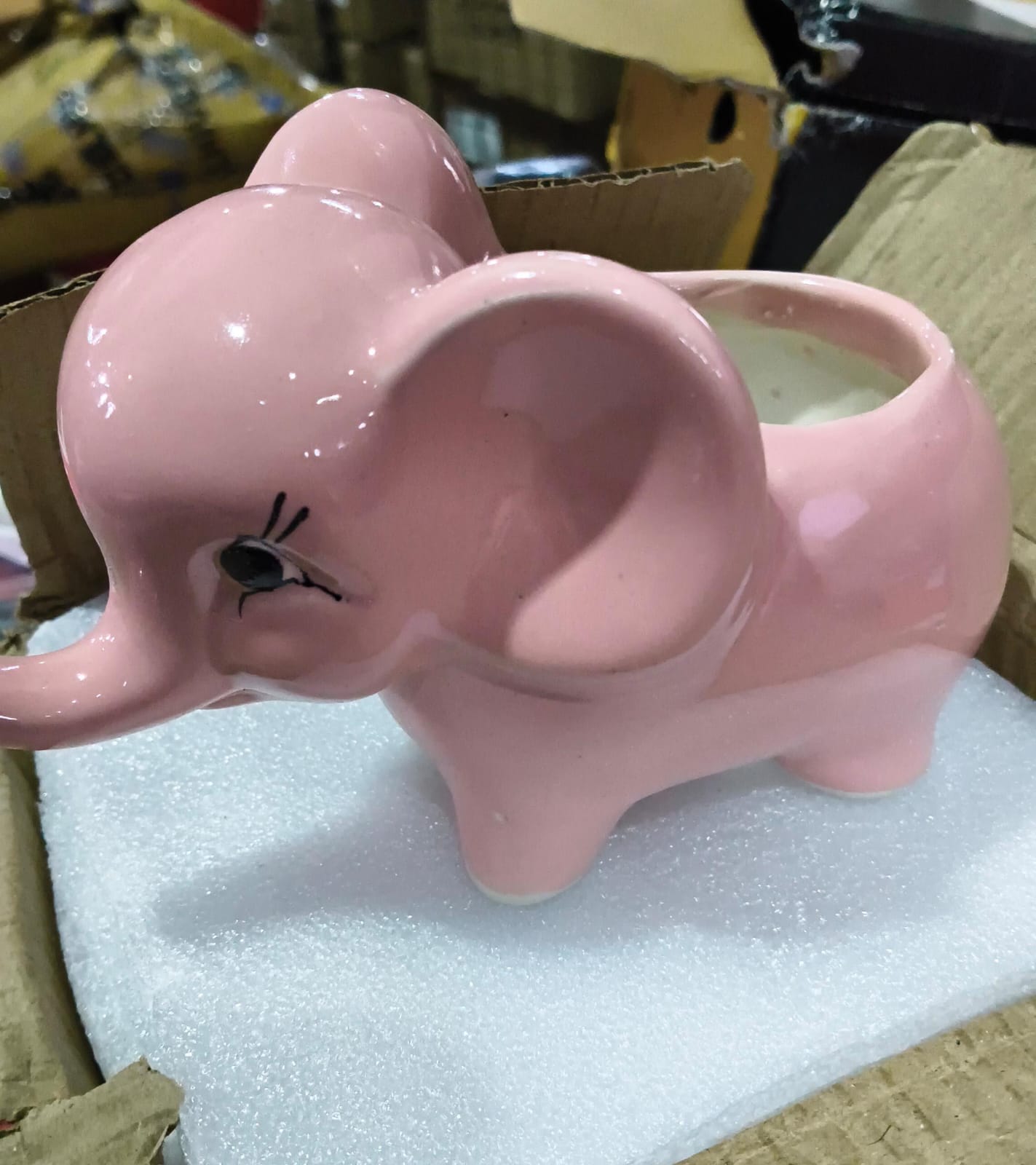 Private Label Baby Elephant Shaped Ceramic Indoor Flower Pot Pink Pack of 1