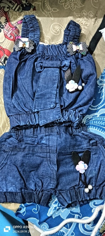 Private Label baby Girl Outfits Summer Clothes Top With Shorts Set Denim Blue