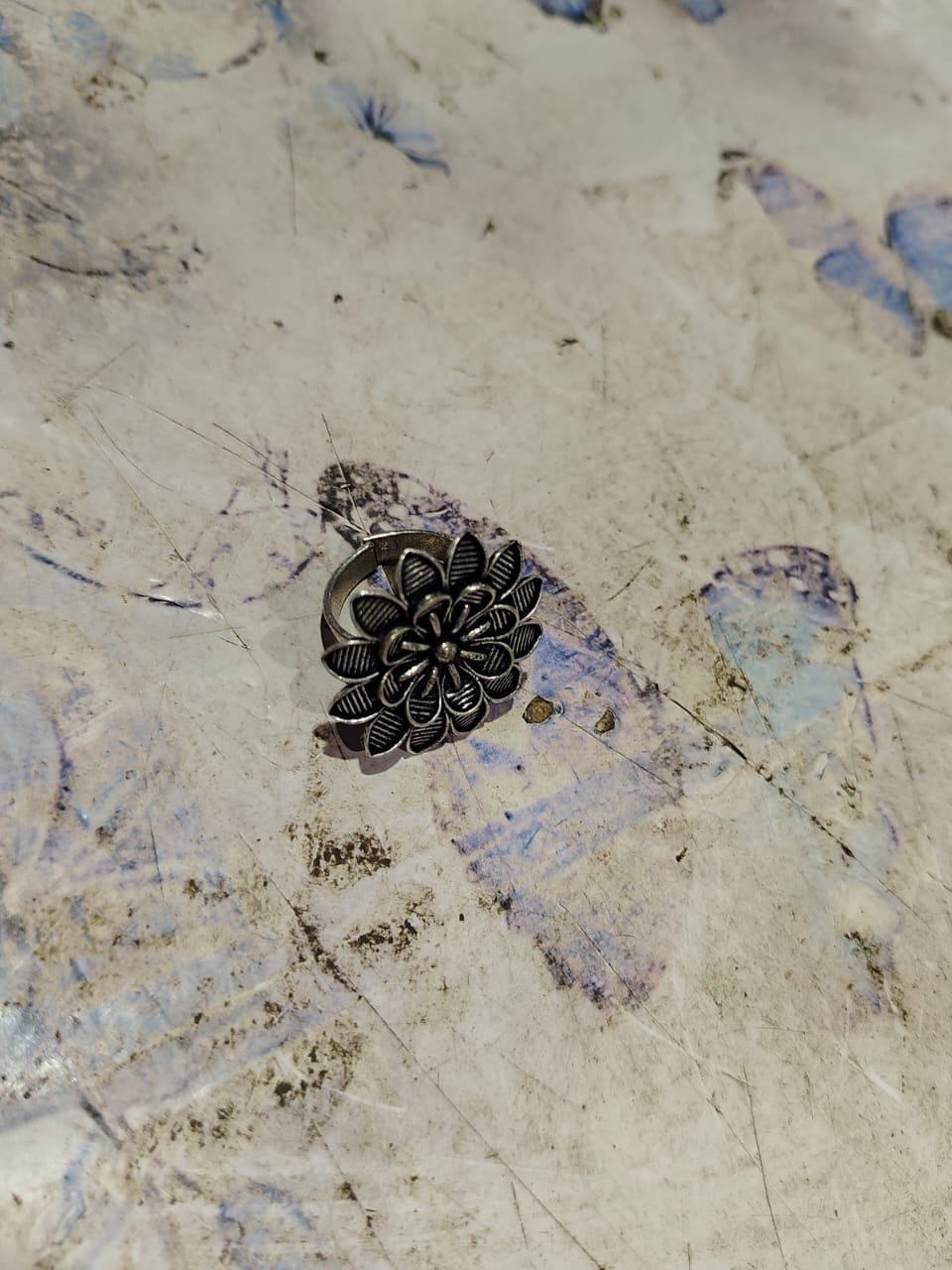 Private Label Beautifully Oxidized Brass Ring with Floral Design
