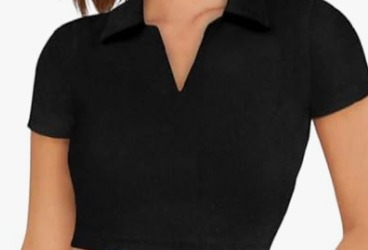 Private Label Black Collared Vneck Crop top for Women size xxl