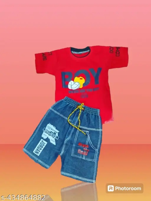 Private Label Boys Graphic Print Tshirt With denim Shorts 0 Size