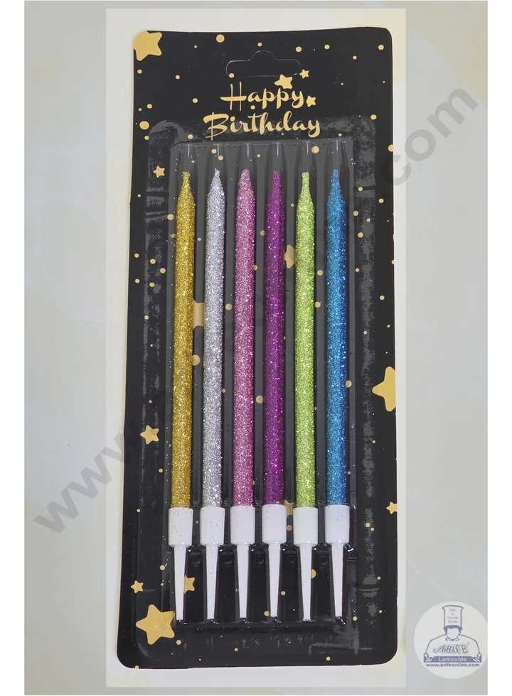Private Label CAKE DECOR Multi Color Glitter Thin Long Candles
