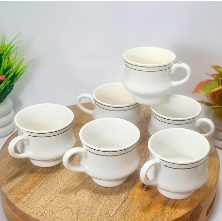 Private Label Ceramic Bone China Gold Line Mona Tea Coffee Cup 12 Pcs 120 Ml White 120 Milliliter