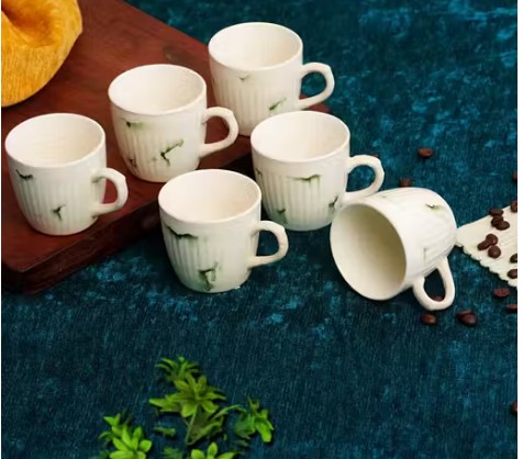 Private Label Ceramic Tea Coffee Milk Cups Latest White Checkered Pattern pack of 6