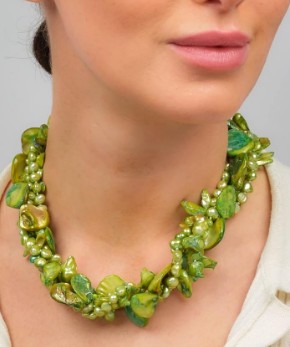 Private Label Classic Design MultiStrands Lime Green freshwater Pearl and Green