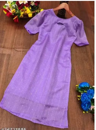 Private Label Daily Wear Luxurious Embroidered Heavy Net Kurtis with Sequins and Lining for Women Colour Purple Size Xs
