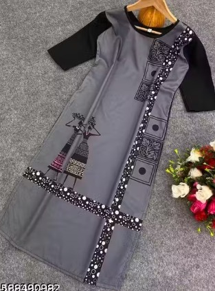 Private Label Elegant Grey and Black Printed ALine Kurti size L
