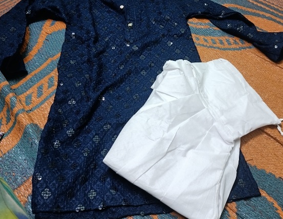 Private Label Embroidery and Sequins Work Navy Blue Rayon Cotton Kurta and Patiyala set 18 Size