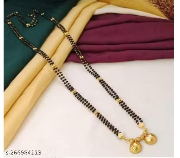 Private Label Ethnic Traditional One Gram Gold Glorious Long Chain Black Beads 30 inch and 18 inch Short Daily Wear