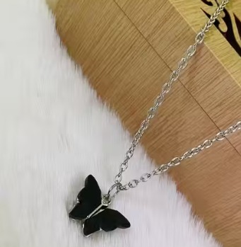 Private Label Fancy Black Butterfly Pendant Chain For Girls And Womens Silver Chain