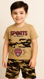 Private Label Fashion Beige Tshirt and Shorts Half Pant Summer Set for Baby Boys Free Size brown