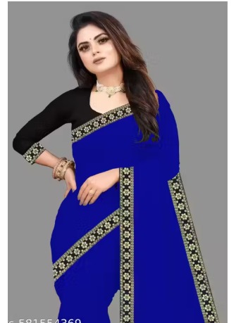 Private Label Georgette saree highlighted with a grand Maharani lace border Colour Blue