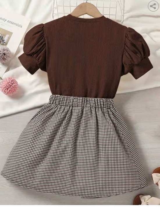 Private Label Girls Checked Fit and Flared Dress size 8 colour brown