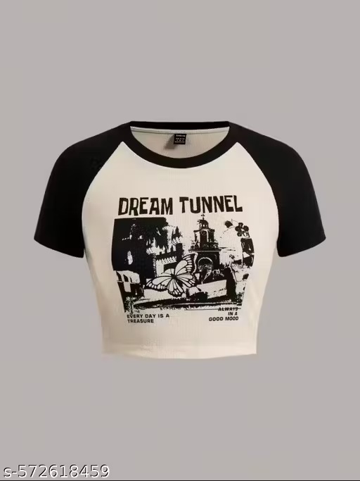 Private Label Girls Slogan Graphic Drawstring side Crop top For Women Blue And White Colour M Size