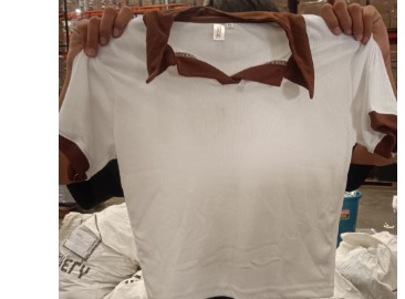 Private Label Glitsy Crop Top Women s Short Knit T shirt V neck AND Polo Collar Blocked WHITE BROWN COLOUR size xl