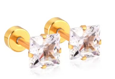 Private Label Gold Earring Small Square Crystal Stud Earrings