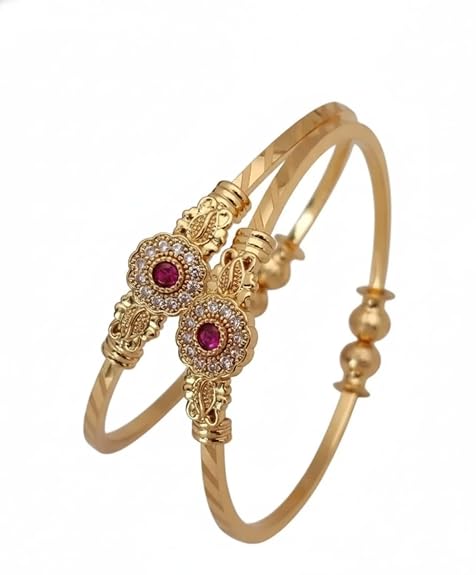 Private Label Golden Colour Adjustable Bangle With Stone Work For Womens Bracelet Pack of 2