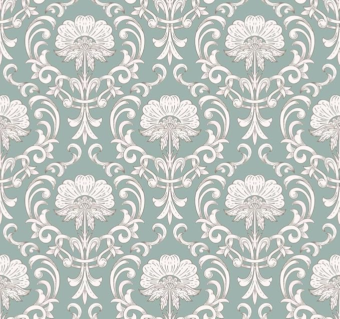 Private label Green Cream Flowers Damask Vinyl SelfAdhesive Wallpaper