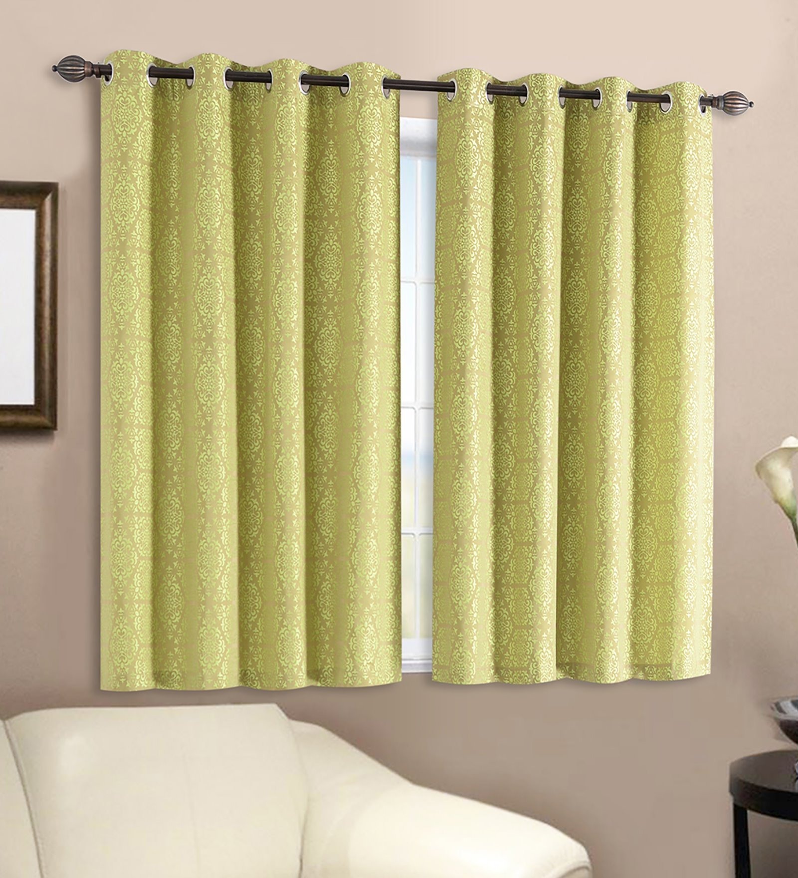 Private Label Green Semisheer Polyester 5 Feet Eyelet Window Curtains Set of 2