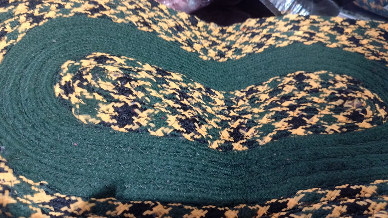 Private Label Green Yellow Black Colour Mix Door Mat Mini Oval Size