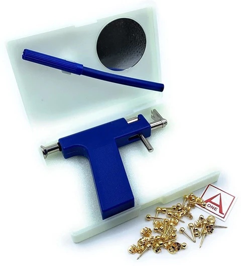 Private Label Gun Shots Plastic Instrument with 12 pair Studs for Piercing Plastic Clip on Earring Blue