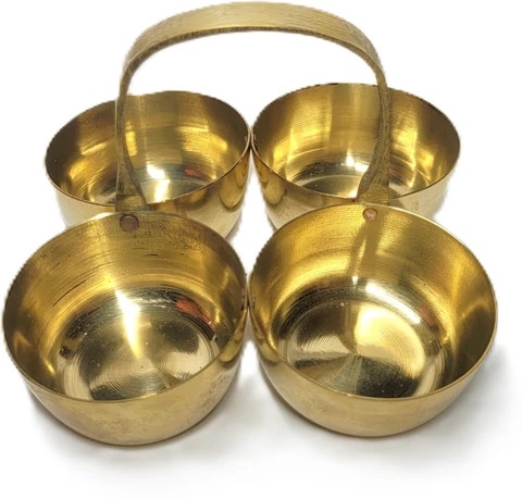 Private Label Hatekhori Brass Panchpal Chowmukh Haldi Kumkum Holder