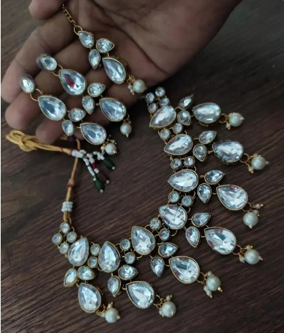 Private Label Jewels Kafe Brass Gold plated Gold White Jewel Set Pack of 1