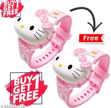 Private Label Kids Cartoon Hello Kitty Watch colour pink Buy 1 Get 1 Free