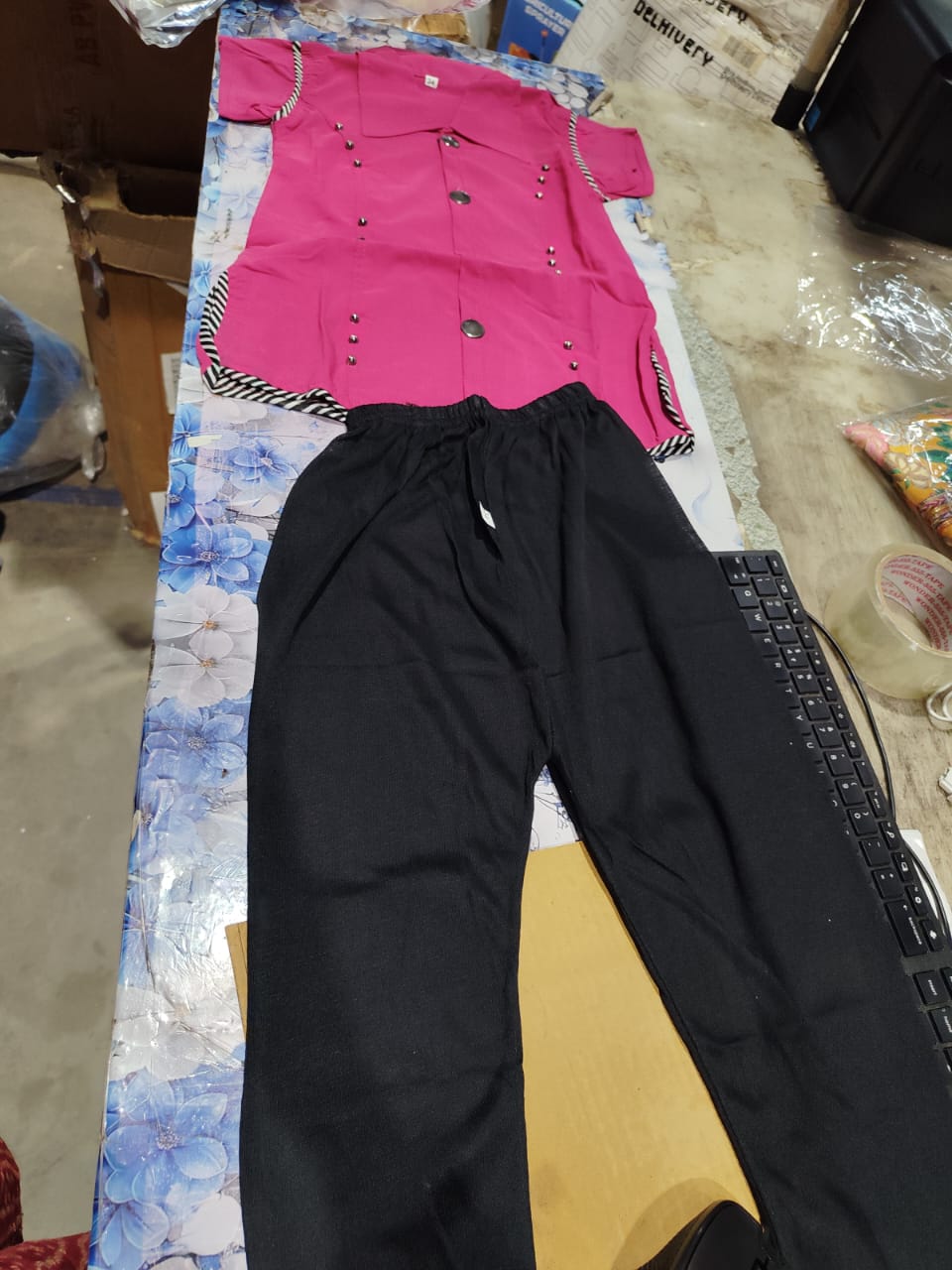 Private Label kurtis pant set pink and black 34 size
