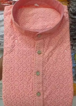 Private Label Men Sequence Work Rayon Peach Kurta Size L Colour Light Orange