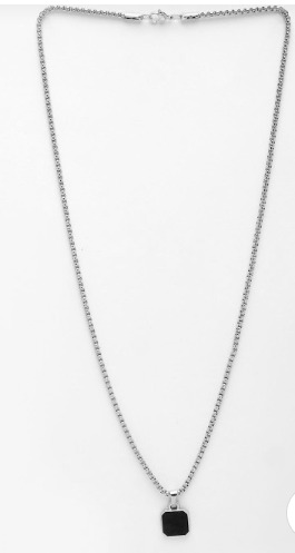 Private Label Men Silver Plated Artificial Stone Square Pendant With Chain