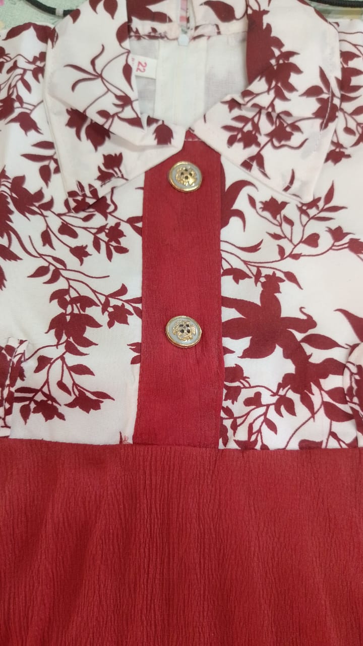 Private Label Meroon White Frock For Girls 22 Size