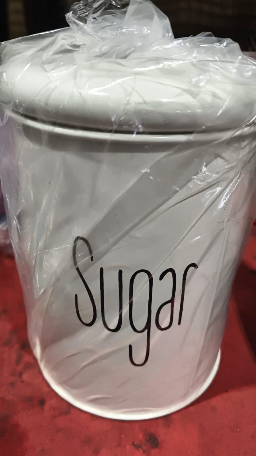 Private Label Mild Steel Glossy White Sugar Jar 900 ml