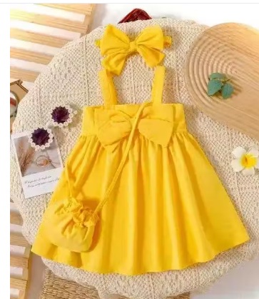 Private label Msk collection New Trending Frock For Kids Girls Shorts Sleeve YELLOW COLOUR