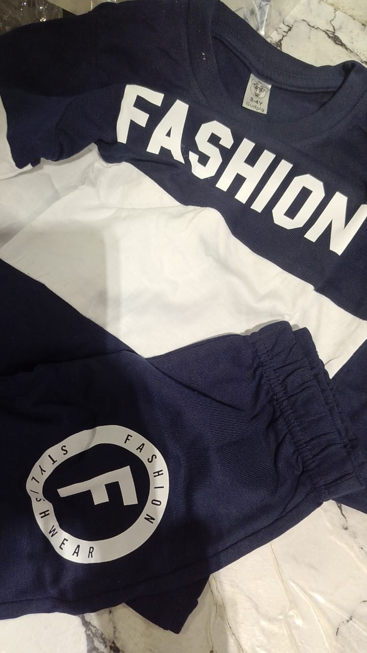 Private Label Navy Blue Colour Kids 3 To 4 Years Boys Top Bottom Set Full Sleeve