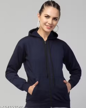 Private Label Navy Blue Colour Plain Casual Zipper and Hoodie Jacket size L