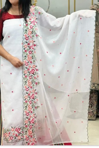 Private Label NET COTTA FABRIC WITH THREAD WORK UNSTICHED SALWAR SET MULTICOLOR