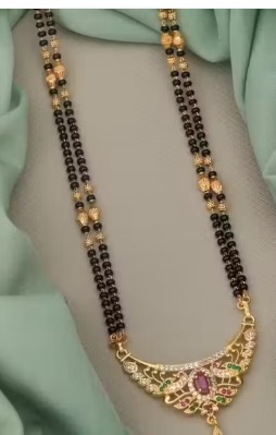 Private Label One Gram Micro Gold Plated AD Diamond Mangalsutra With 2 line Ser 28 Inch