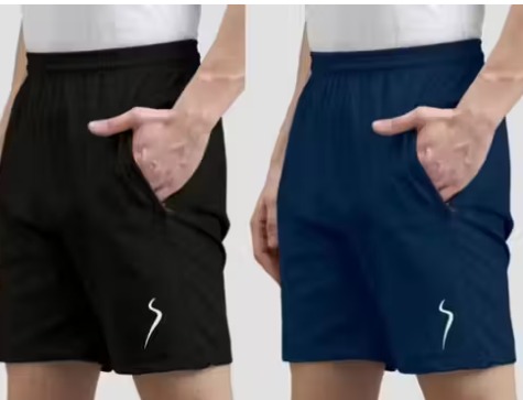 Private Label Pack of 2 Solid MenColour Black And Blue Sports Shorts Basic Shorts Regular