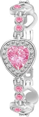 Private Label Pink Analog Dial Wrist Watch for Womens Heart Shape Love Bracelet