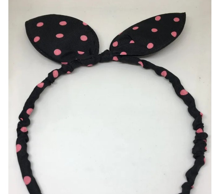 Private Label Plastic Bunny Ears Hairband Polka Dot Print Black