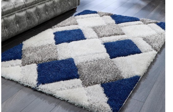 Private Label Polyester Shaggy Carpet Rug for Home White And Blue