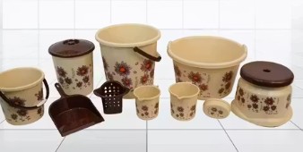 Private Label Premium 10 Pcs Jumbo Bathroom Set Floral Design Beige Brown Durable Plastic Bath Combo