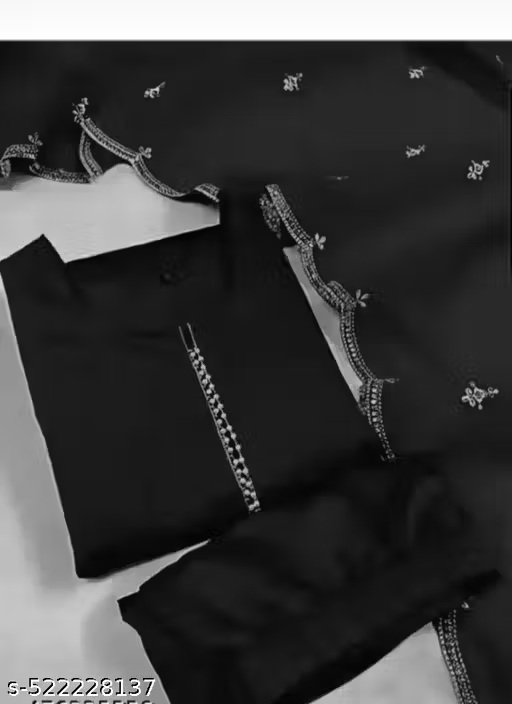 Private Label Premium Rayon Slub Kurti with Pant And Dupatta Black Colour Free Size