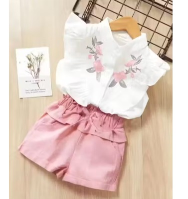 Private Label Pretty Trendy Girls Top AND Bottom Sets IN WHITE AND PINK COLOUR