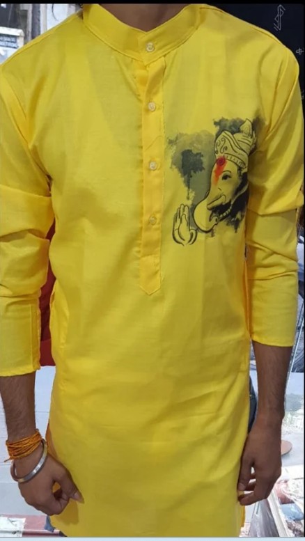 Private Label Printed Fashionable Men Kurta colour yellow size 40