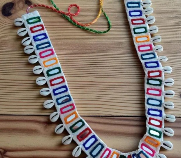 Private Label Rangilo Multicolour Mirror Work Single Layer Waist Belt with Cowrie Shell Tassel