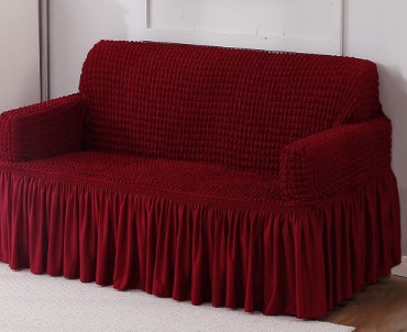 Private Label Red Polyester 3 Seater Stretchable Elastic Frilled Sofa Cover