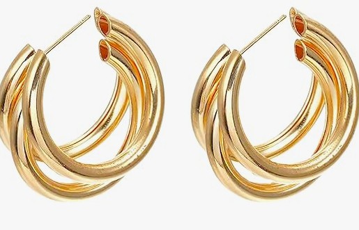 Private Label Salve C Shaped Chunky Triple Hoop Western Golden Earrings